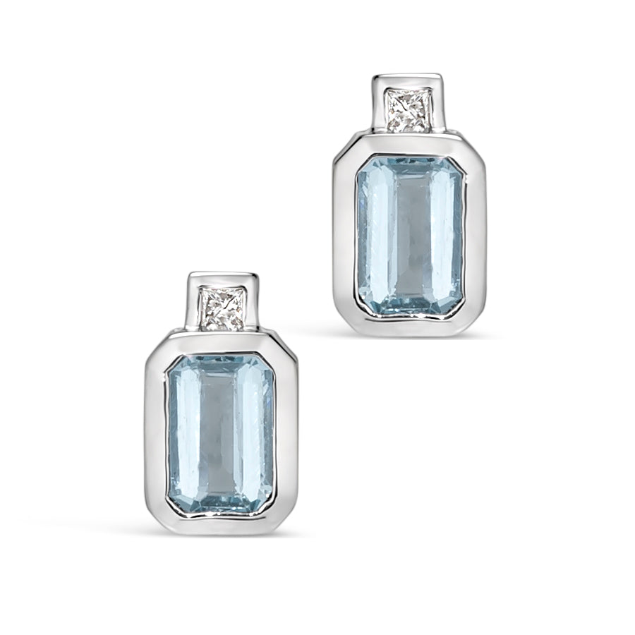 1.23 TCW Natural Octagon Cut Aquamarine with Diamonds 14K White Gold Ring