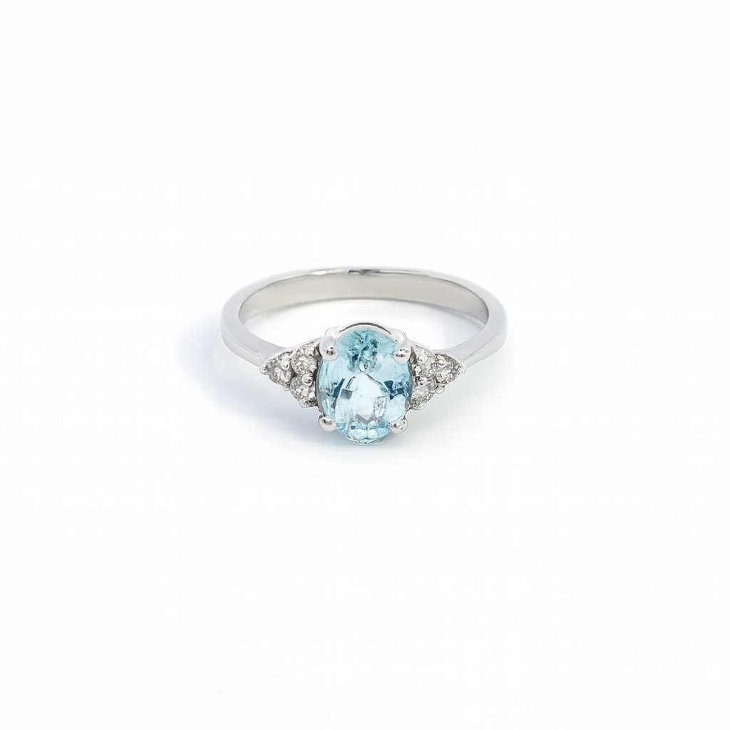 1.23 TCW Natural Oval Cut Aquamarine with Diamonds 14K White Gold Ring