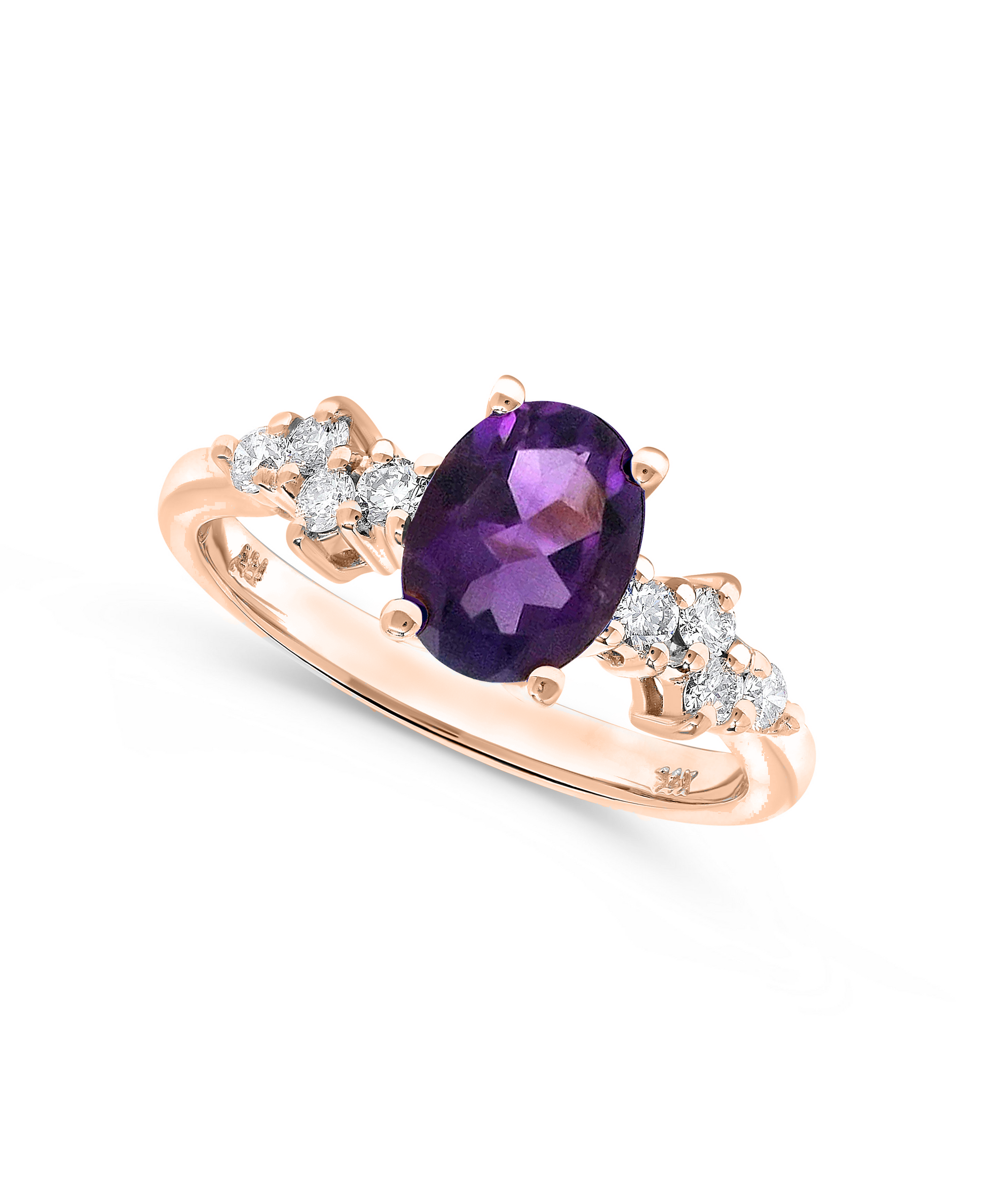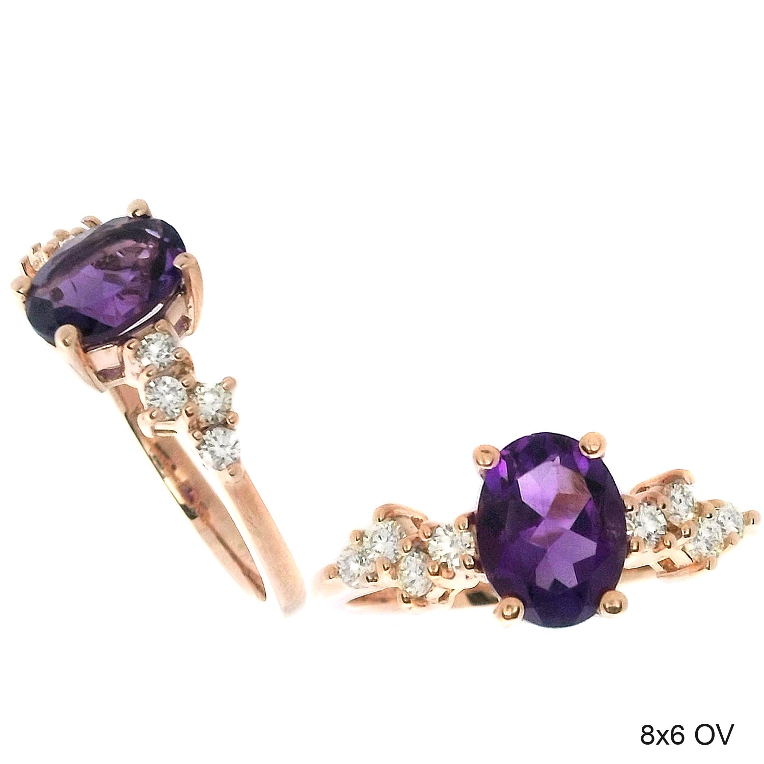 1.34 TCW Natural Oval Cut Amethyst and Diamond 14K Rose Gold Engagment Ring