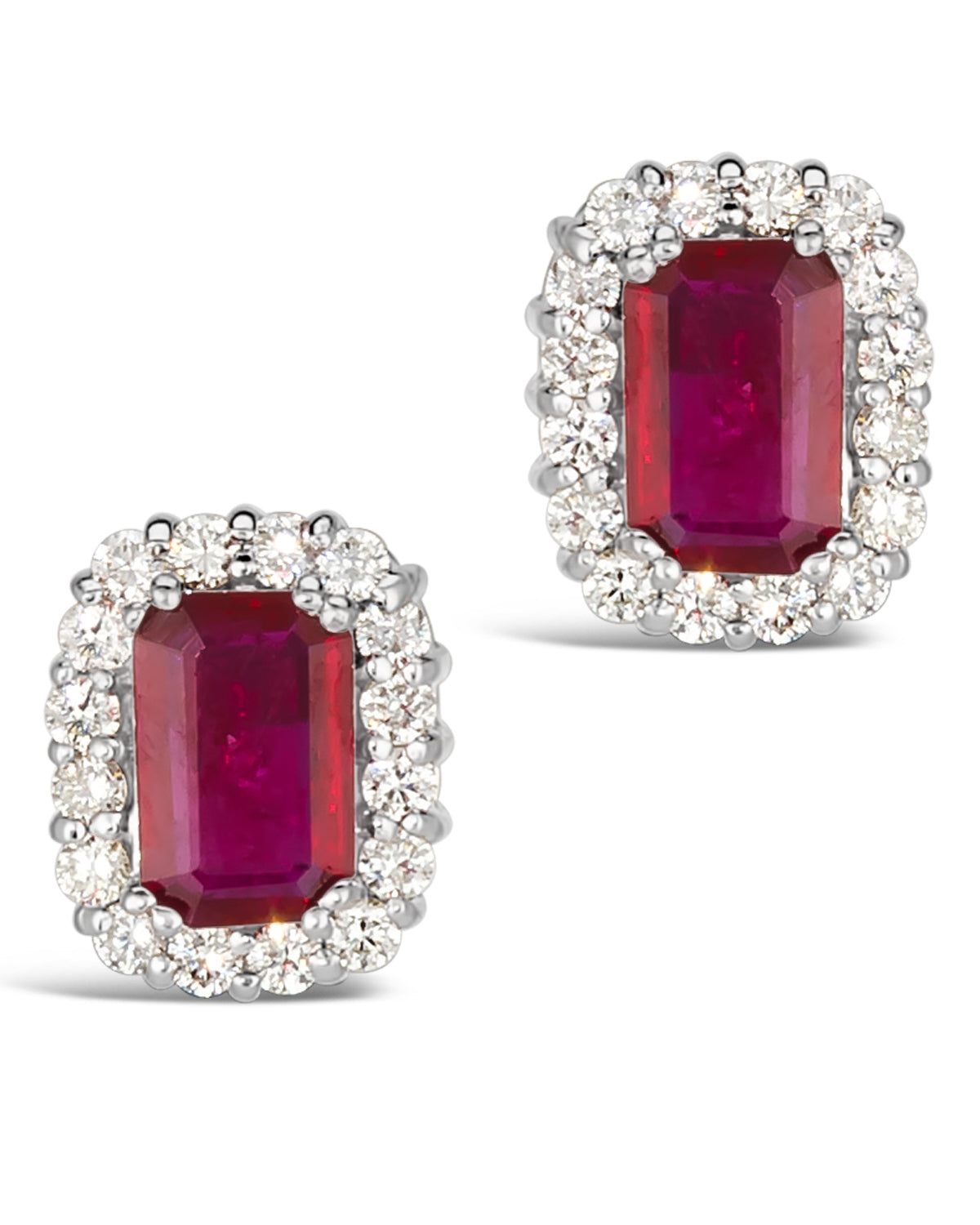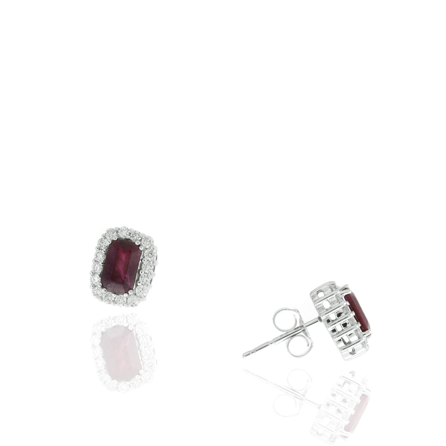 1.72 TCW Natural Octagon Cut Red Ruby with Diamonds 14K White Gold Earrings