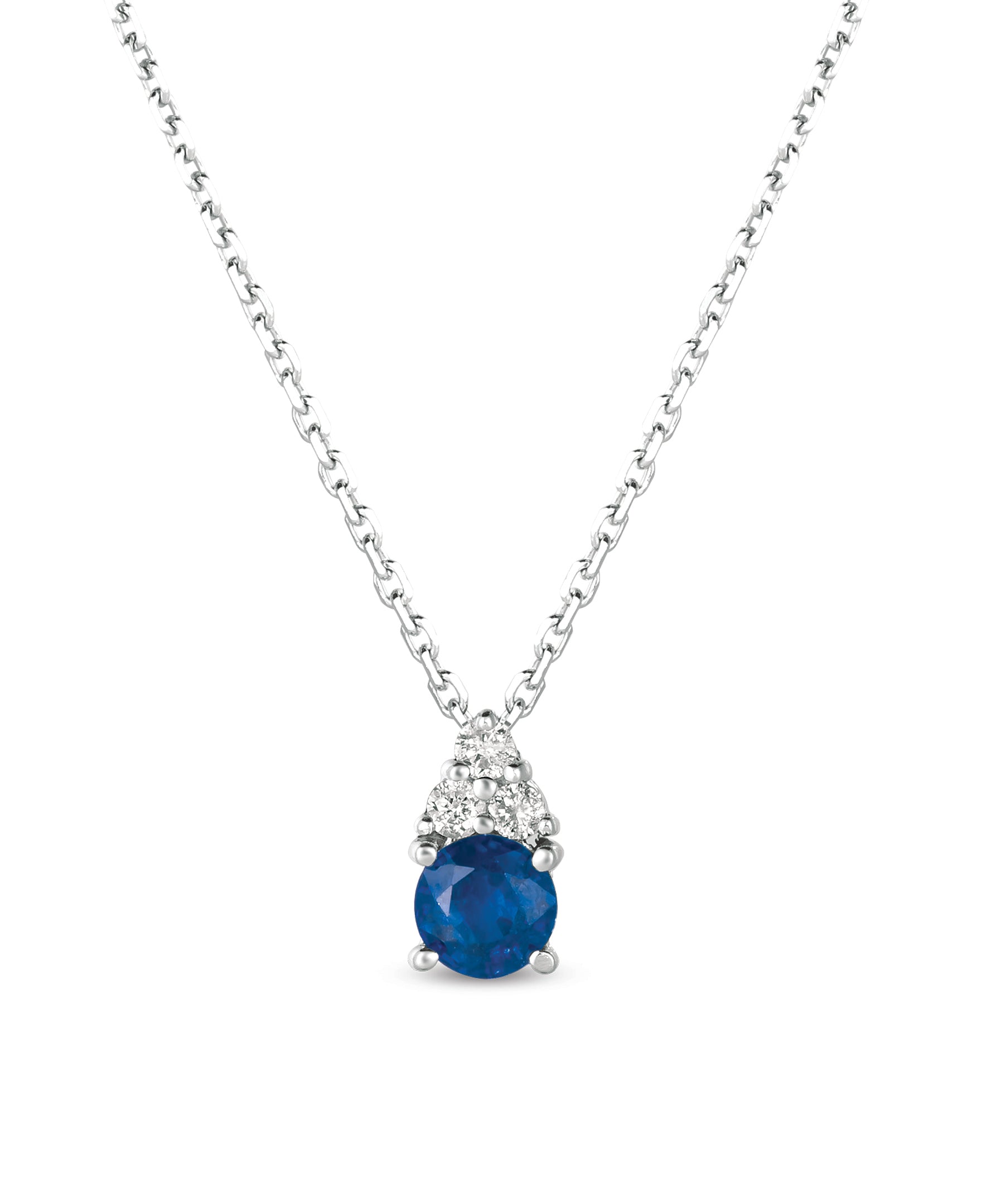 14K White Gold .46 TCW Natural Round Cut Sapphire and White Diamonds Pendant