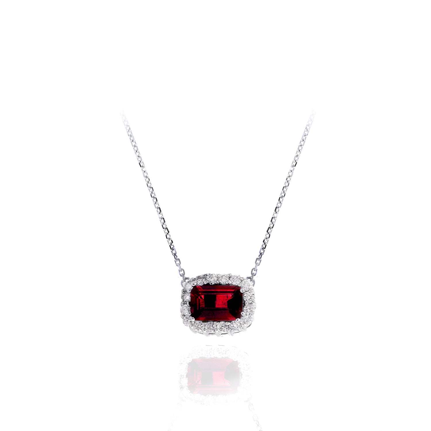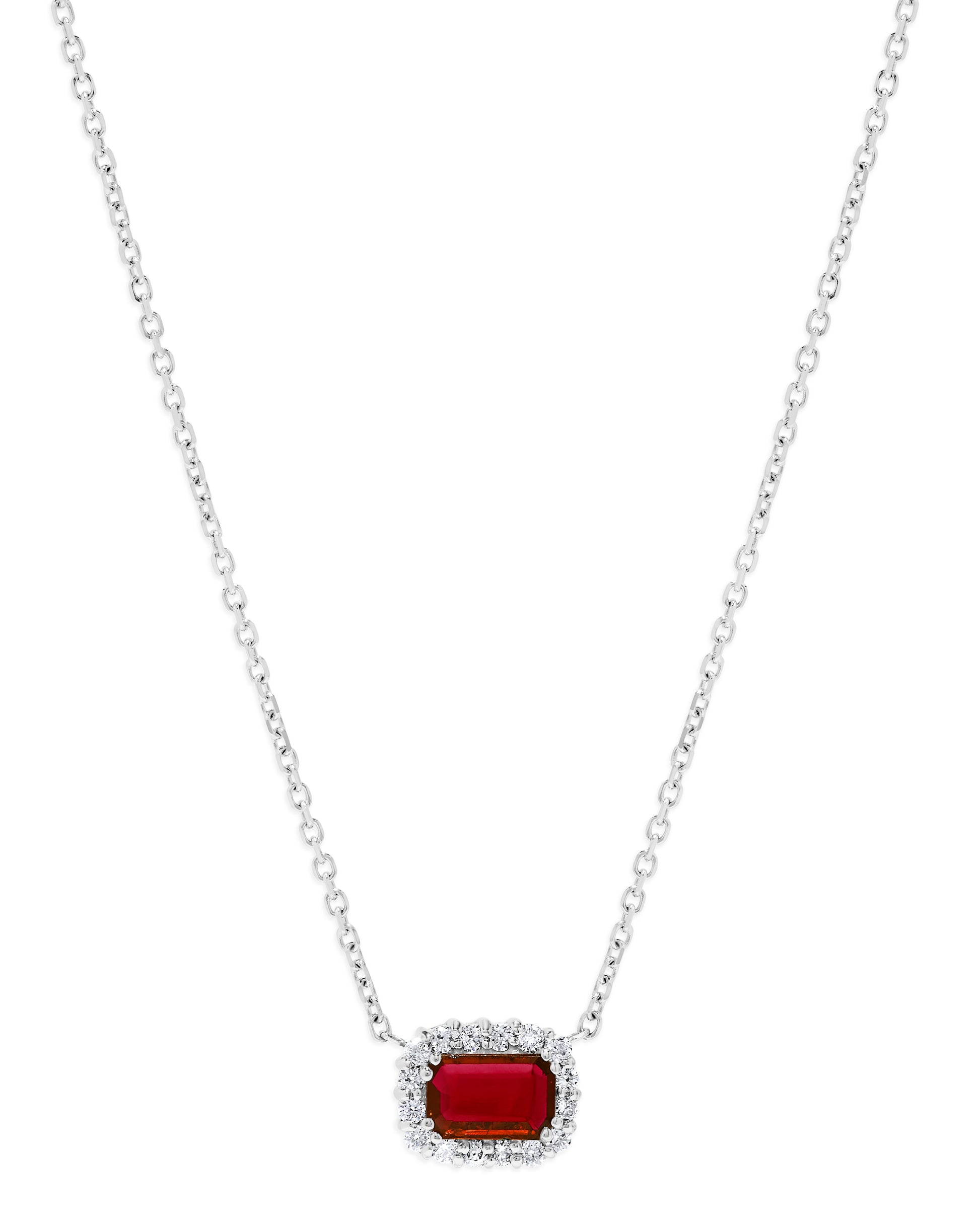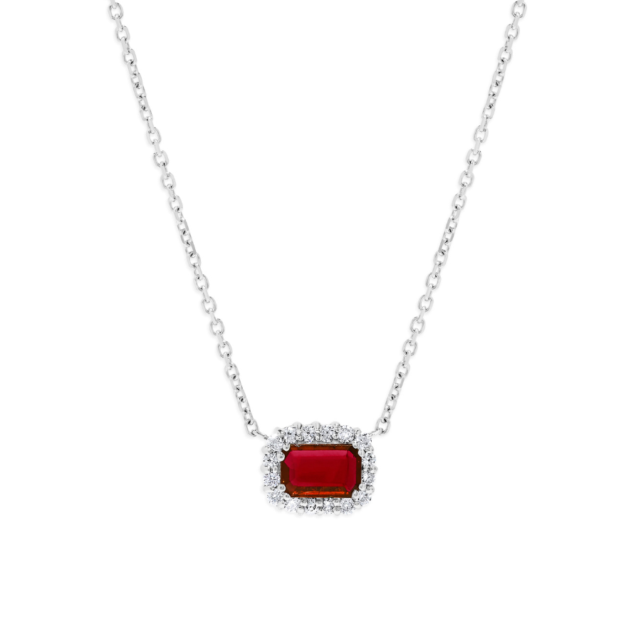 14K White Gold .86 TCW Natural Octagon Cut Red Ruby and White Diamond Necklace