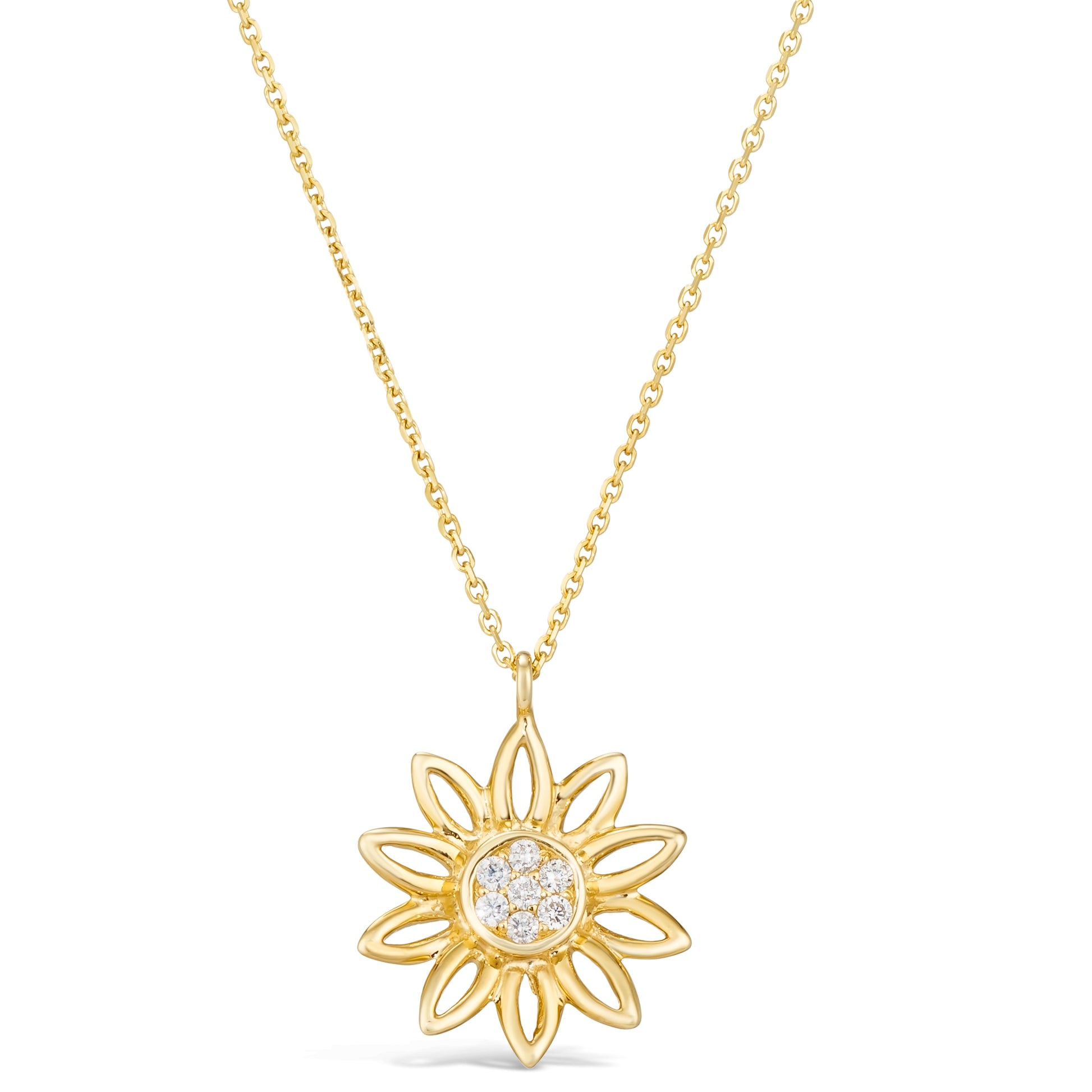14K Yellow Gold .14 TCW Natural Diamond Flower Pendant