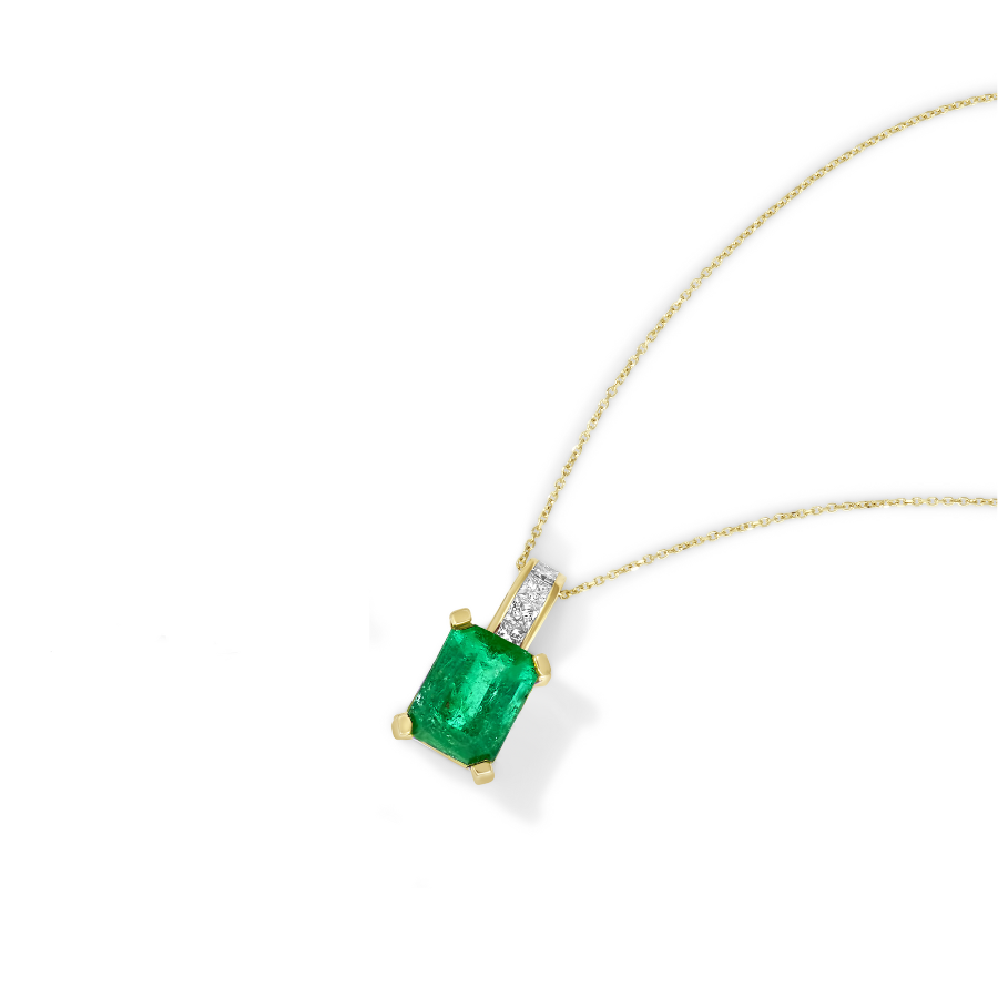 14K Yellow Gold 2.46 TCW Natural Octagon Cut Emerald and White Diamonds Pendant