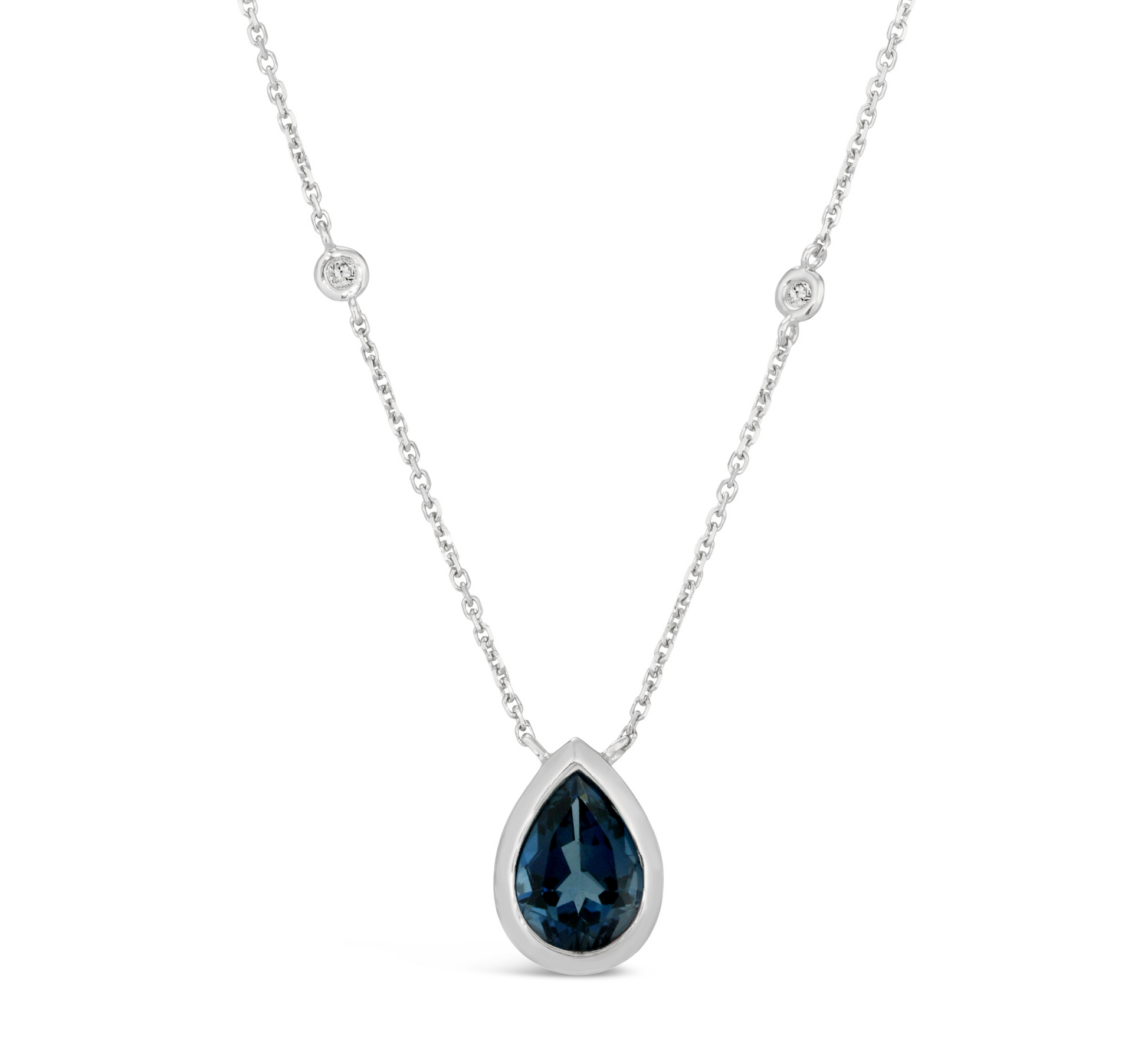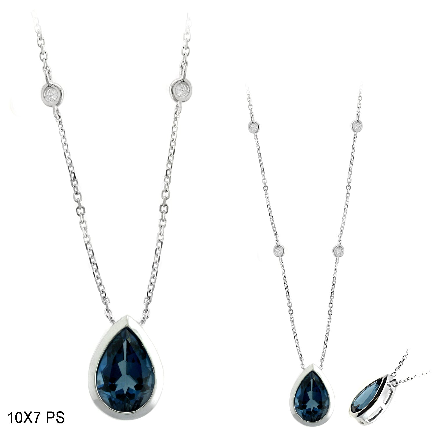 3.58 TCW Natural Pear Shape Blue Topaz and White Diamond 14K White Gold Necklace
