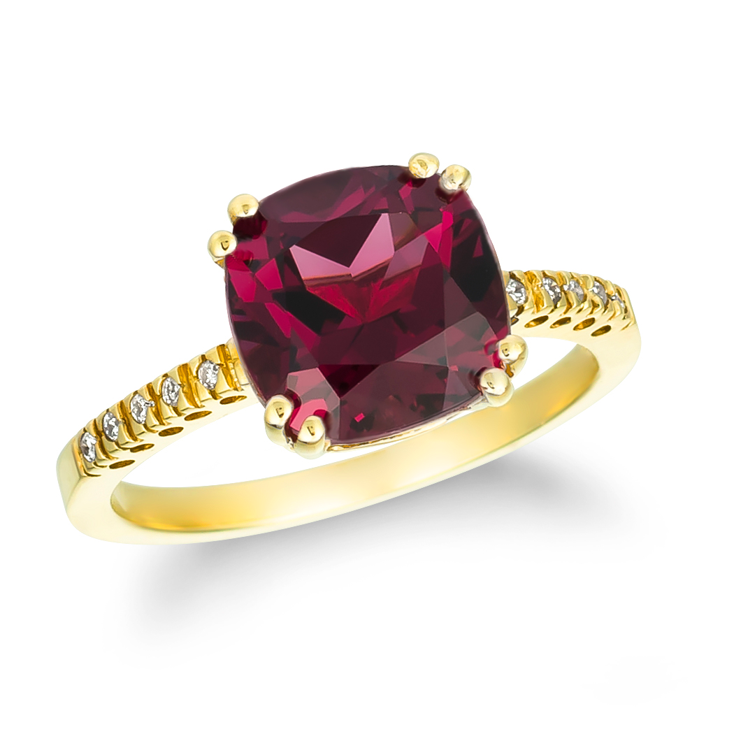 Stone Type: Natural Cushion Cut Garnet & White Diamonds