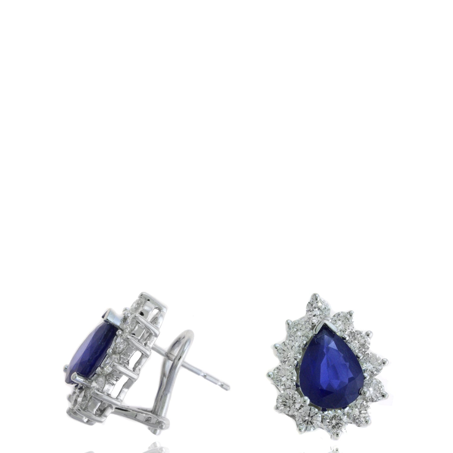 5.52 TCW Natural Pear Shape Blue Sapphire & Diamonds 14K White Gold Earrings