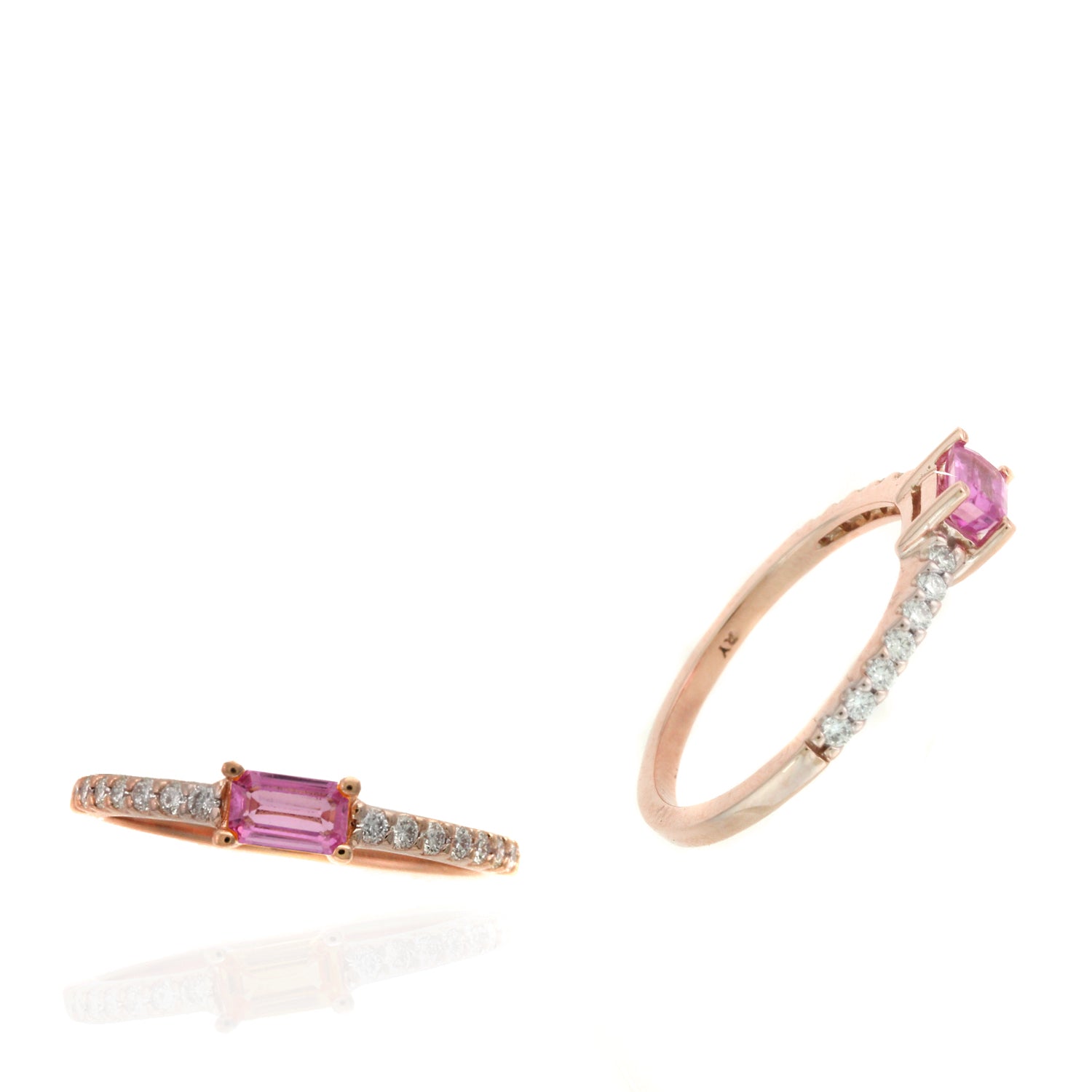 .62 TCW Natural Octagon Cut Pink Sapphire and Diamond 14K Rose Gold Ring