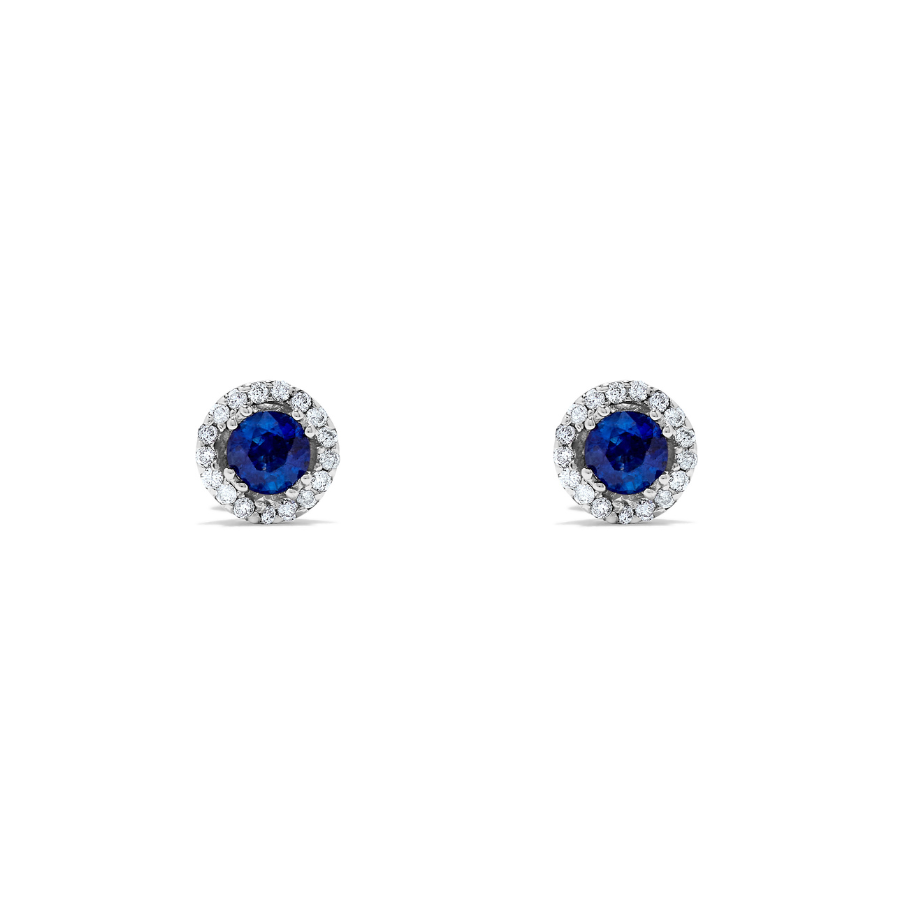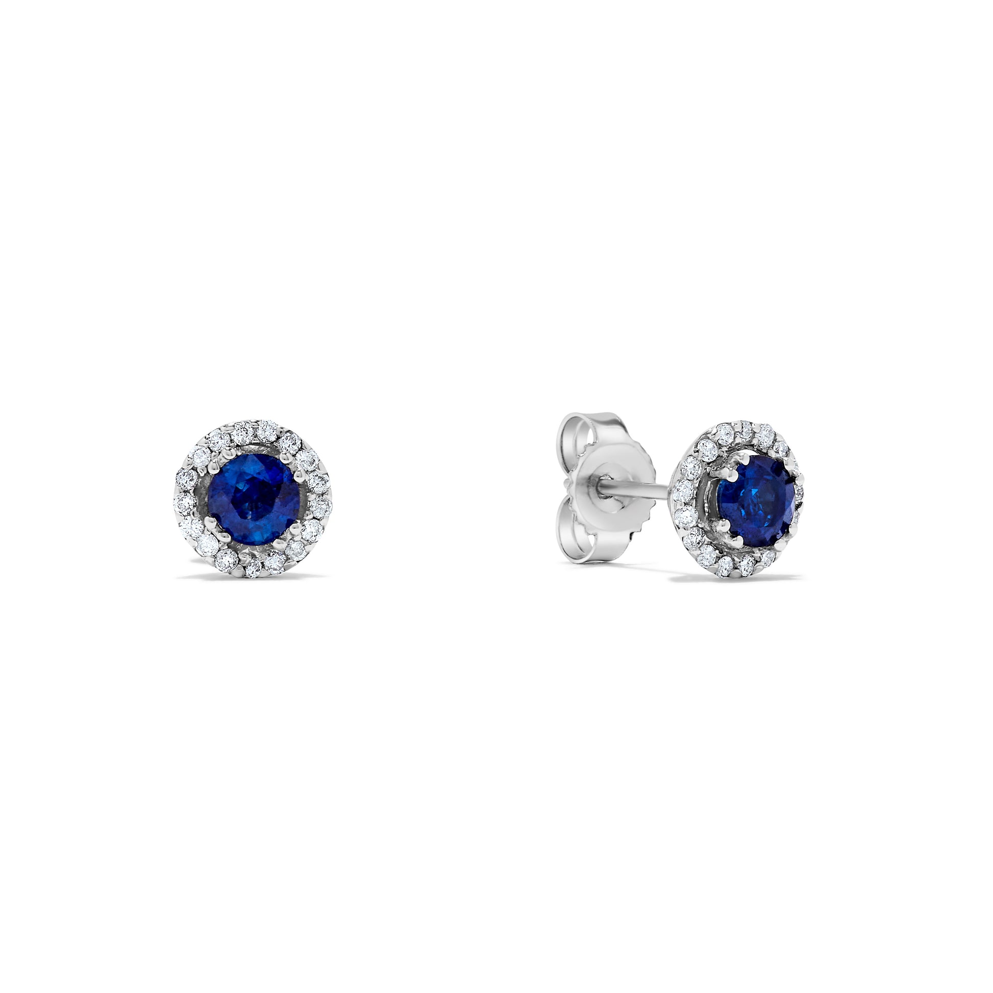 .73 TCW Natural Round Cut Blue Sapphire 14K White Gold Stud September Birthstone