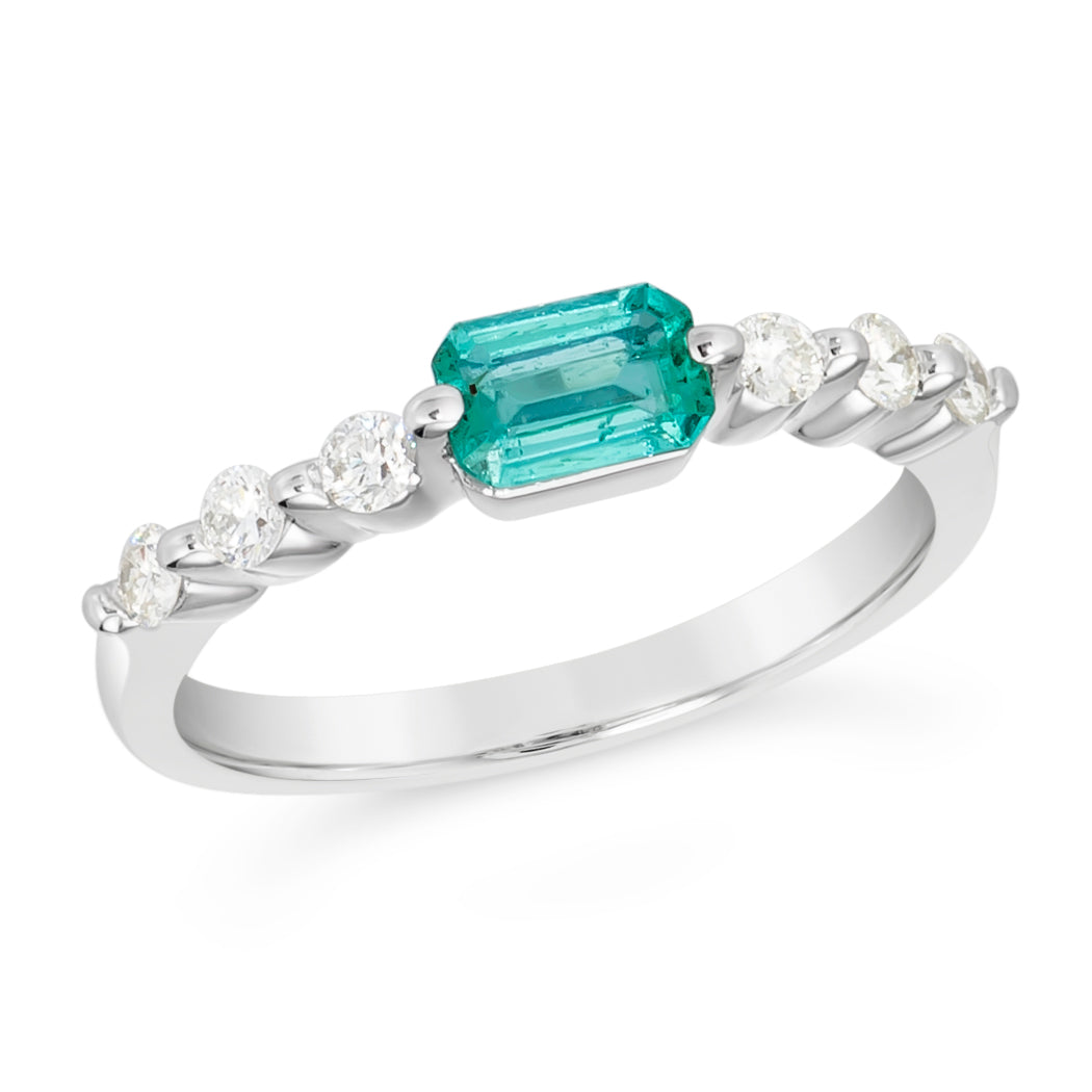 Stone Type: Natural Octagon Cut Emerald & White Diamonds