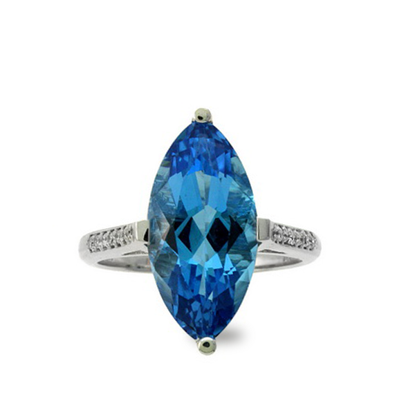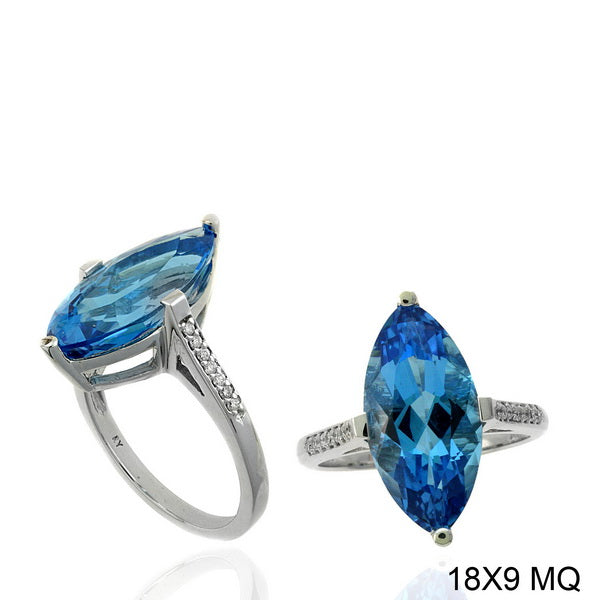 8.08 TCW Natural Marquise Cut Blue Topaz with Diamonds 14K White Gold Ring