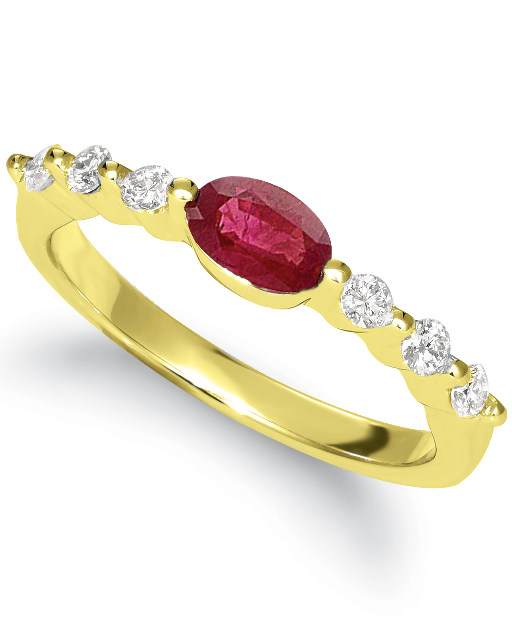 Stone Type: Natural Oval Cut Red Ruby & White Diamonds